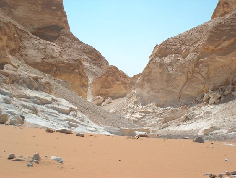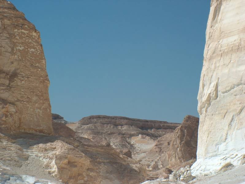 De witte woestijn, een bijzonder landschap met surrealistiche spierwitte kalkformaties, door wind en zand uitgeslepen als paddestoelen van soms wel tien meter hoog in het woestijnzand.