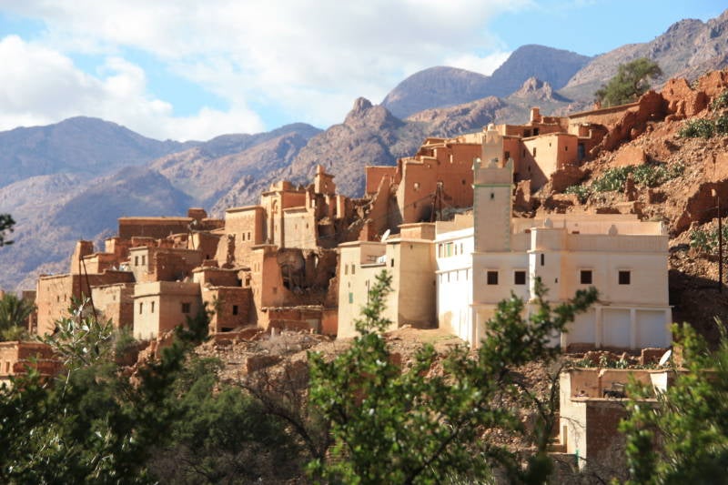 In de groene oasen volgt het ene dorp op het adere. Ze zijn allemaal hoog boven uitstekende rotsen gebouwd. Door de voor Ammeln karakteristieke architectuur van natuursteen, steken de nederzettingen wat kleur betreft nauwelijks af tegen de omgeving. Alleen de van leisteen tegels gemaate versieringen van de ksour steekt af tegen de in vele roodtinten glanzende rots- en steenpuzzel. Op sommige plaatsen is evenwel ook te zien dat beton en synthetisch kleuren de oude bouwmaterialen hebben vervangen.