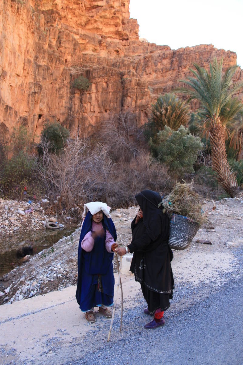 Met de bus bereiken we door een landschappelijke prachtige route langs de zuidwestflank van de Anti-Atlas met woestromatische bergdalen en duizelingwekkende afgronden pal langs de smalle en bochtige toegangsweg de oasestad Tafraoute, het centrum van de Cheleuh berbers.