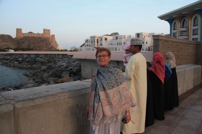 Het zicht op Mutrah wordt eerst versperd door een hoge heuvel met op de top een historische kasteeltoren, het Mutrah fort. Onmiddelijk daarachter ligt de drukke souk. In de tegenoverliggende diepzeehaven ligt gebroederlijk naast het cruiseschip het jacht Al Said van de sultan voor anker.